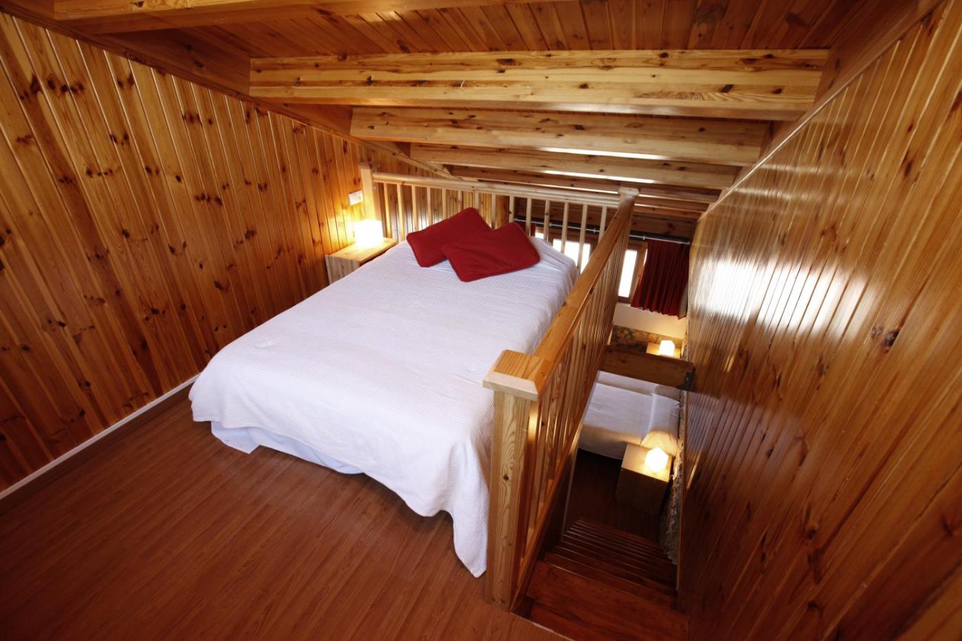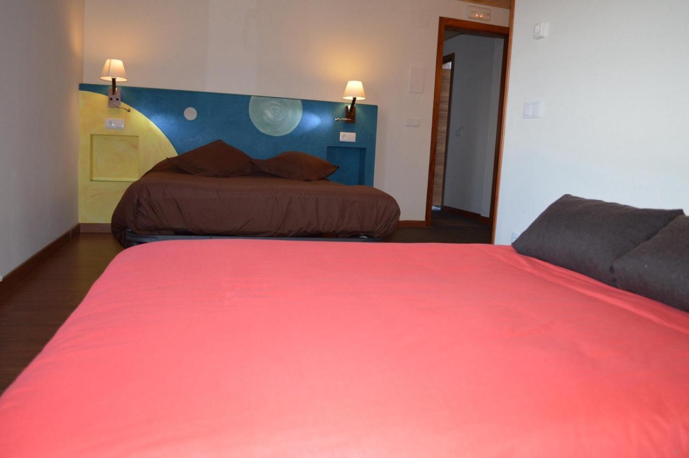 Family Room (2 Adults + 2 Children). Set over 2 floors this room has simple, rustic décor and overlooks the Àger Valley. There is free WiFi, heating and a private bathroom with free toiletries. It has 2 double beds. ;