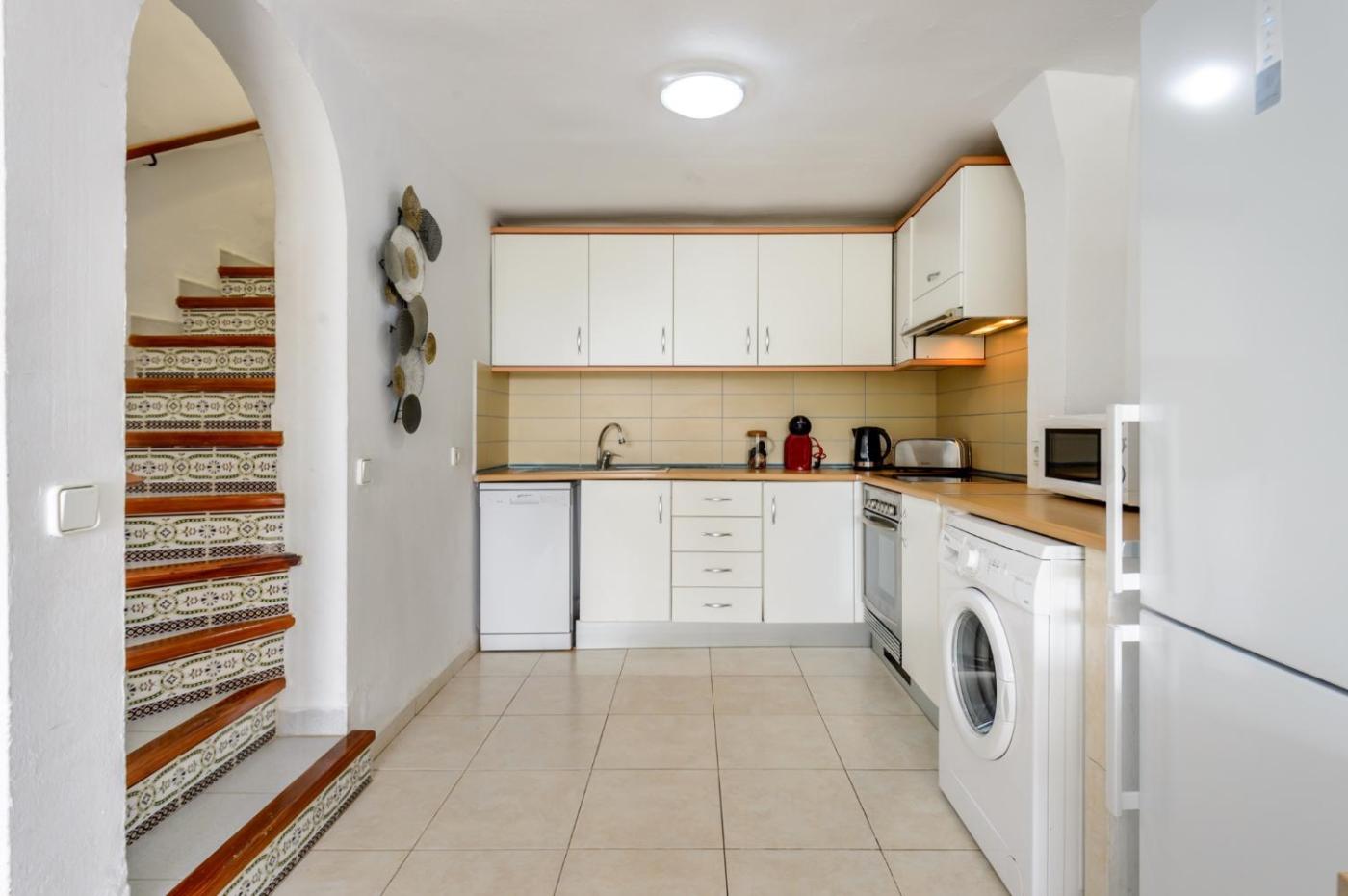 Two-Bedroom House. Boasting a private entrance, this air-conditioned holiday home includes 1 living room, 2 separate bedrooms and 1 bathroom with a bath. In the fully equipped kitchen, guests will find a dishwasher, kitchenware, an oven and a microwave. Featuring a terrace with sea views, this holiday home also offers a washing machine and a TV with cable channels. The unit has 4 beds.