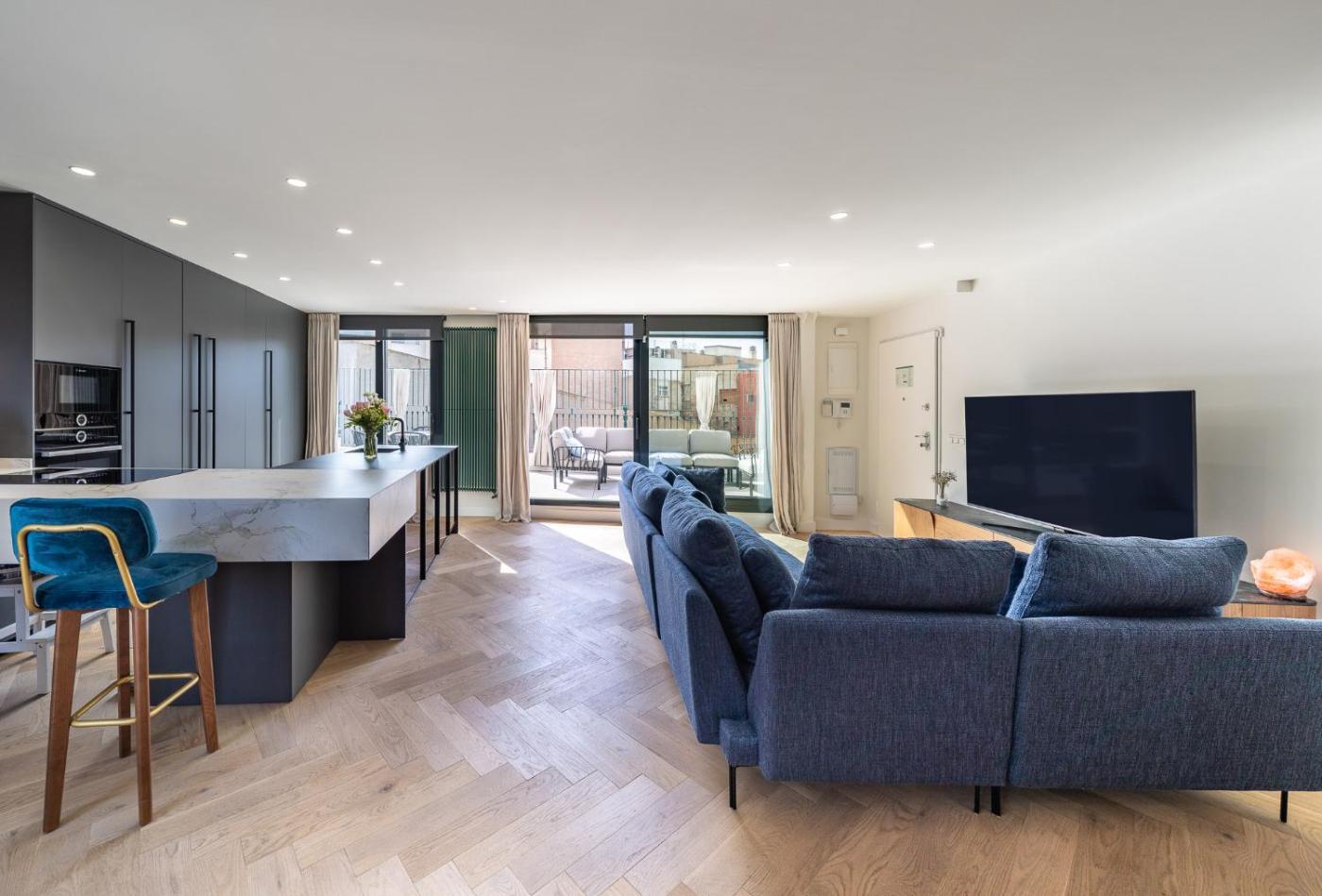 Queen Suite. Featuring a private entrance, this air-conditioned suite consists of 1 living room, 2 separate bedrooms and 1 bathroom with a bath and a shower. In the fully equipped kitchen, guests will find a stovetop, a refrigerator, a dishwasher and kitchenware. The spacious suite provides a minibar, a tea and coffee maker, a wardrobe as well as a terrace with city views. The unit offers 3 beds. ;