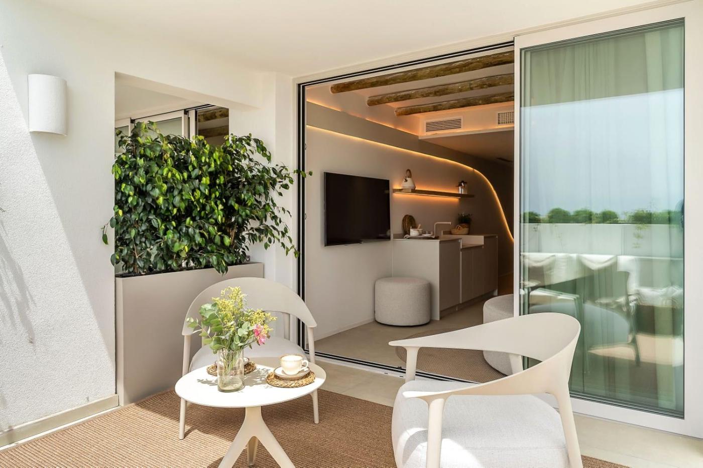 One-Bedroom Apartment with Sea View and Terrace. This apartment comprises 1 living room, 1 separate bedroom and 1 bathroom with a walk-in shower and free toiletries. Guests can make meals in the kitchen that comes with a stovetop, a refrigerator, kitchenware and an oven. The air-conditioned apartment provides a flat-screen TV, a washing machine, soundproof walls, a tea and coffee maker as well as sea views. The unit offers 2 beds. ;