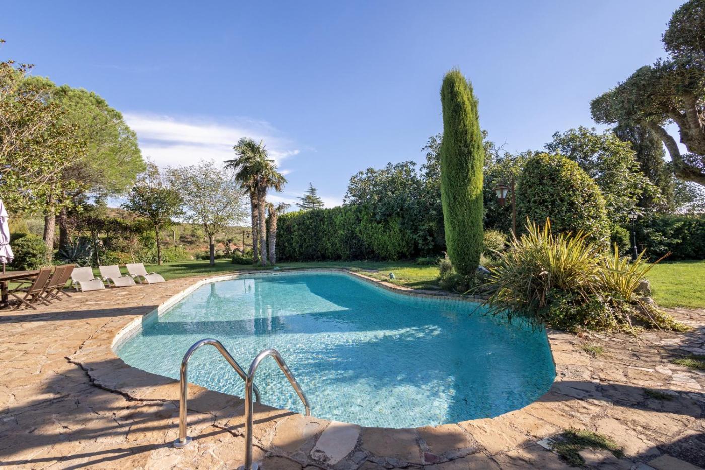 Guests can swim in the outdoor swimming pool, relax in the garden, or go cycling.