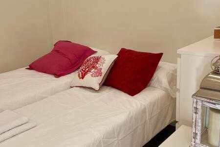 Two-Bedroom Apartment with View. This apartment features 1 living room, 2 separate bedrooms and 1 bathroom with a shower and free toiletries. In the kitchen, guests will find a refrigerator, a dishwasher, kitchenware and a microwave. This apartment is air-conditioned and has a seating area with a flat-screen TV, a washing machine, a coffee machine, a dining area, as well as a wardrobe. The unit has 3 beds.